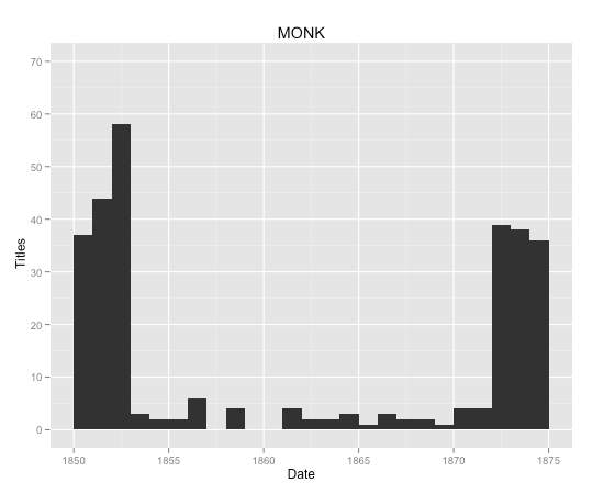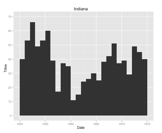 IU has an additional c. 900 Wright texts that have been fully edited and XML encoded (plus 1300 more that have been OCR’ed and XML encoded but not hand edited). This means my depth and temporal coverage in the period around the Civil War just got way better.